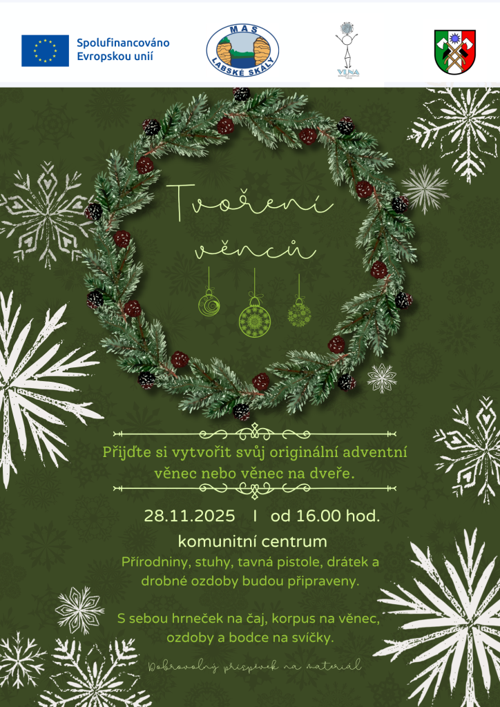 Přijďte nasát vánoční atmosféru a u toho si vytvořit krásné adventní věnce nebo jen věnce na dveře, vrata, prostě na ozdobu :). S sebou hrnek na čaj, korpus na věnec či bodce na svíčky a samozřejmě dobrou náladu!